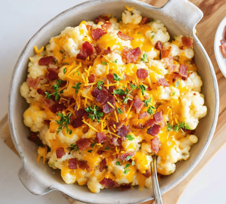 This Keto Cauliflower Mac and Cheese delivers all the creamy, cheesy comfort of the classic dish—without the pasta. Tender cauliflower florets are coated in a rich cheddar cream sauce and tossed with crispy bacon for added depth and crunch. Ready…