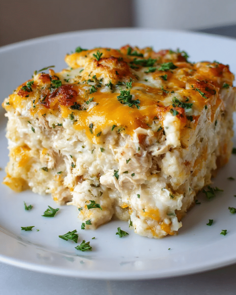 Cheesy Chicken Riced Cauliflower Casserole proves that comfort food can align with wholesome eating goals. With its creamy texture, high-protein base, and vegetable-forward foundation, it delivers satisfaction without excess heaviness. For an even lighter version, reduce added rice or cheese slightly while maintaining the same creamy structure. Whether for family dinners or weekly meal prep, this casserole is a dependable, nourishing favorite.