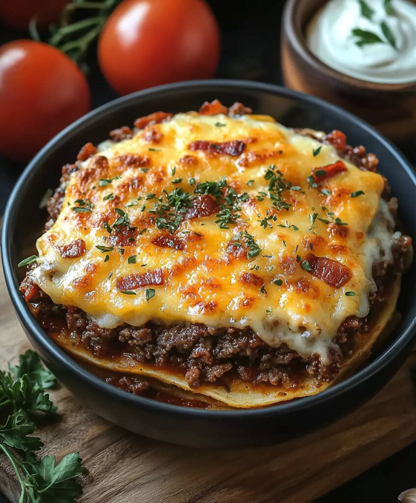 This low-carb bacon cheeseburger casserole captures all the beloved flavors of a classic bacon cheeseburger—seasoned ground beef, crispy bacon, and melted cheddar and Monterey Jack cheeses—in a satisfying baked dish that eliminates the bun while maximizing protein and flavor. The casserole uses eggs and milk to bind the ingredients together, creating a custard-like texture similar to a crustless quiche that holds together beautifully when sliced. The result is a keto-friendly, family-pleasing meal that delivers authentic cheeseburger satisfaction without the carbohydrates from bread, making it perfect for those following low-carb or ketogenic eating patterns.
